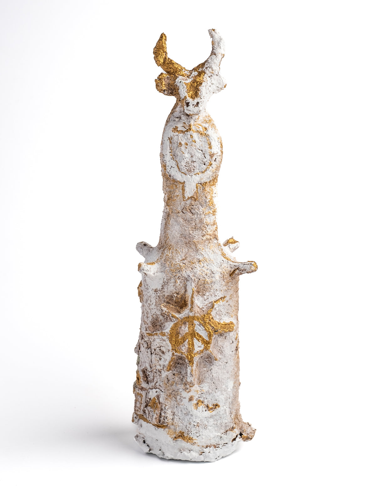 Beyaz Eskitme Gold detaylı Geyik başlı dekoratif şişe